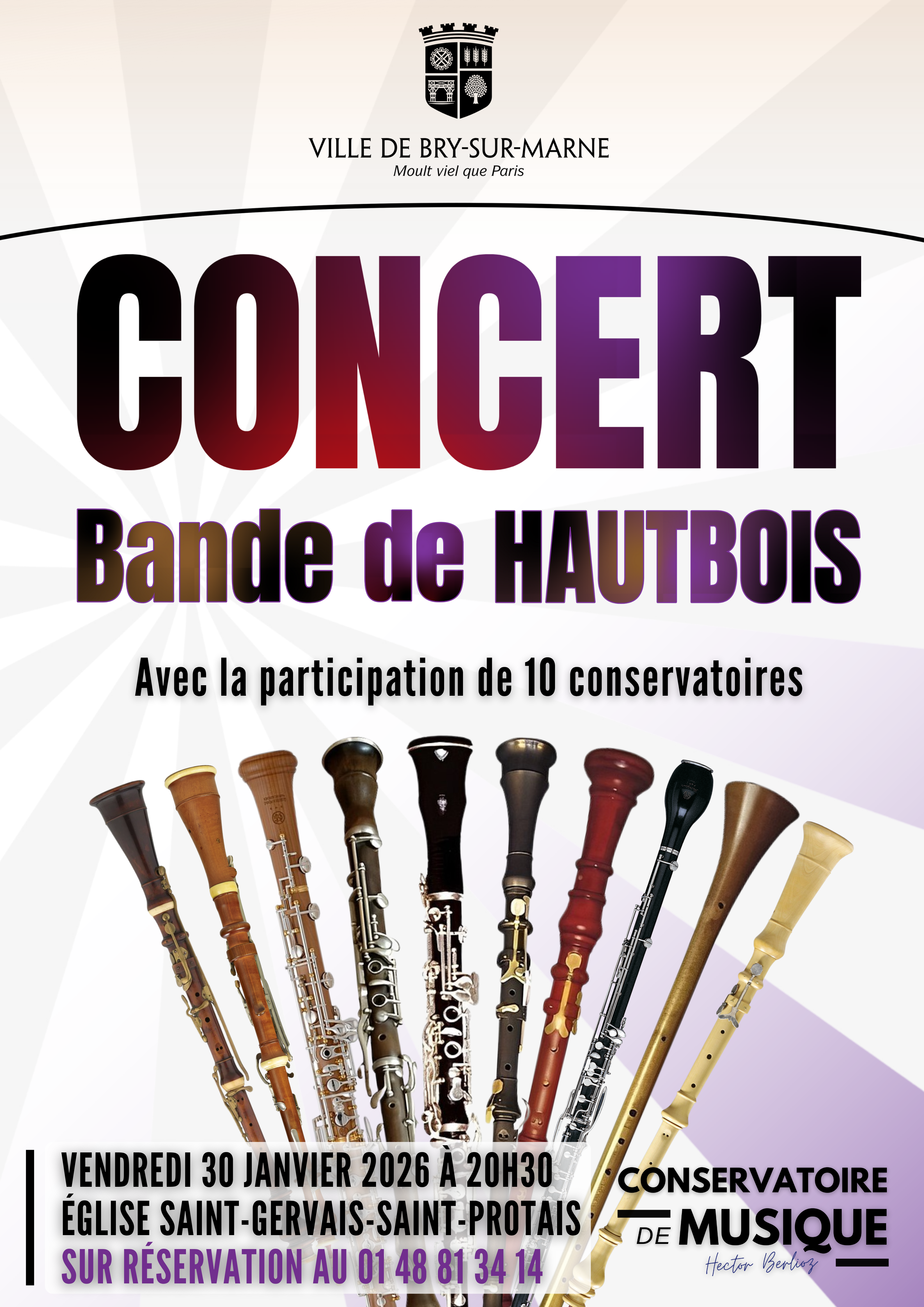 Tous les 2 ans nous accueillons ce concert original de « bande de Hautbois » regroupant les hautboïstes de plusieurs conservatoires des alentours. Cette année 10 conservatoires ont prêté leur concours à cette aventure musicale hors du commun.