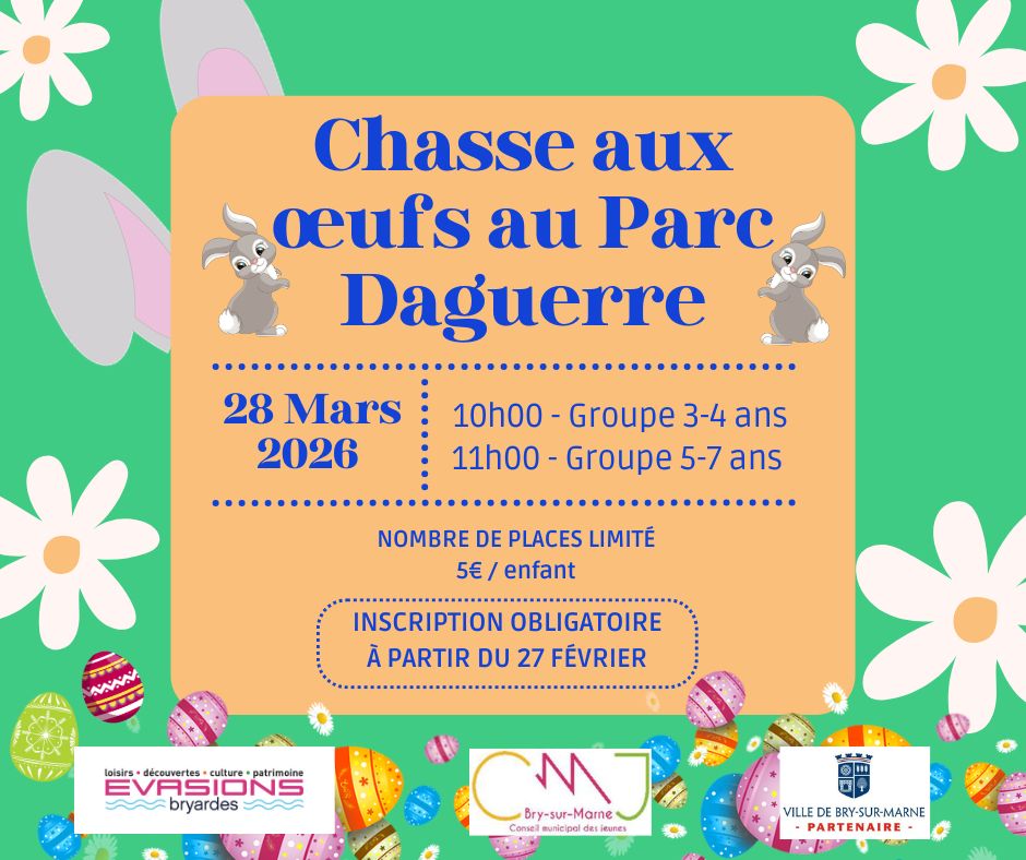 L’activité sera réservée aux enfants de 3 à 7 ans avec deux créneaux pour la chasse aux œufs :