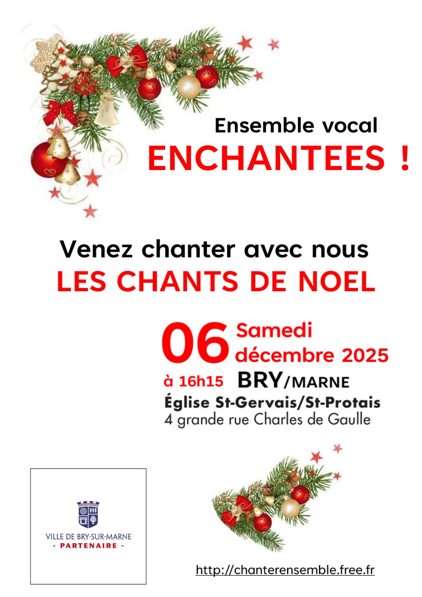 Date : samedi 6 décembre Horaire : 16h15 Lieu : église St-Gervais St-Protais Tarif : libre participation € Infos : sur la page web enchantees.free.fr