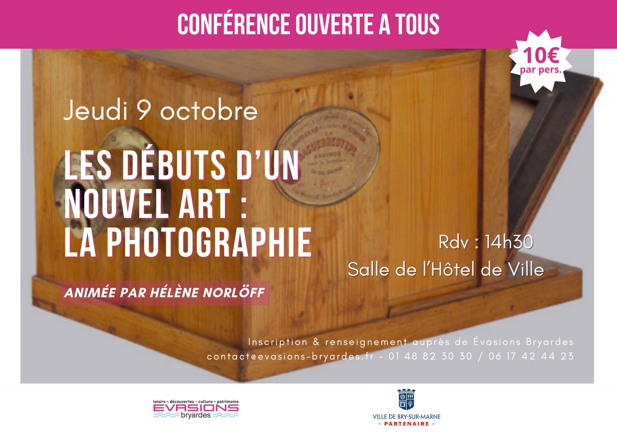 L’association Évasions Bryardes vous propose d’assister à une conférence animée par Hélène Norlöff sur le thème : « Le début d’un nouvel art : la photographie ».