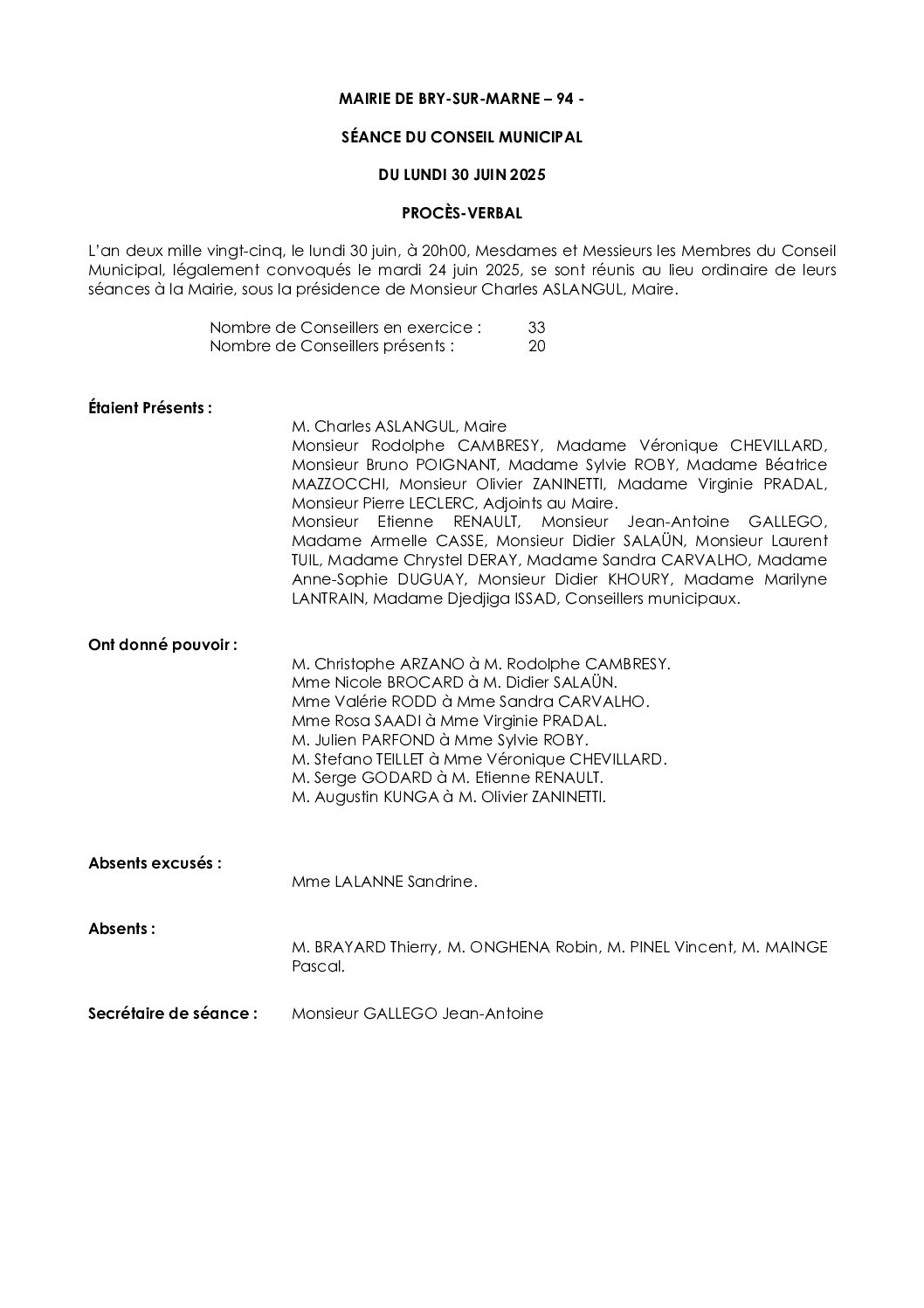 Procès verbal du CM du 30.06.2025