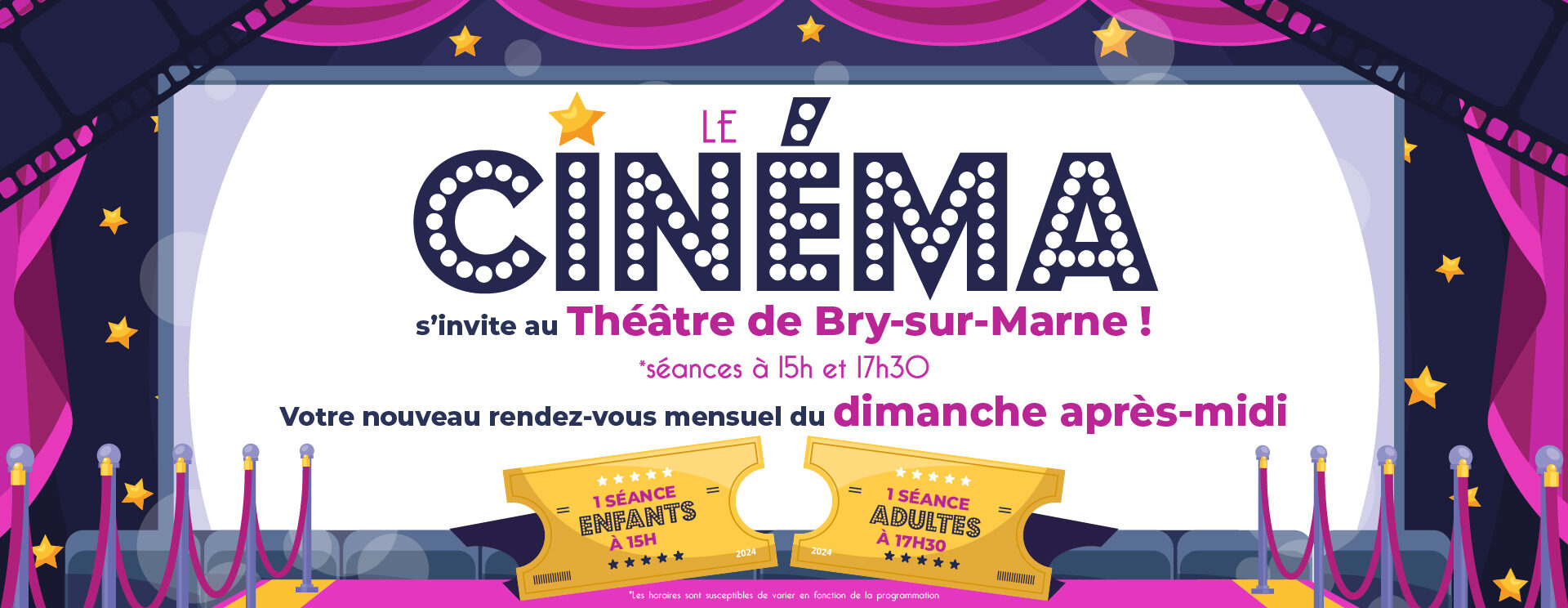 Seul, en famille ou entre amis, n’hésitez pas à pousser les portes du théâtre de Bry pour venir découvrir ou redécouvrir des succès du cinéma, à deux pas de chez vous !